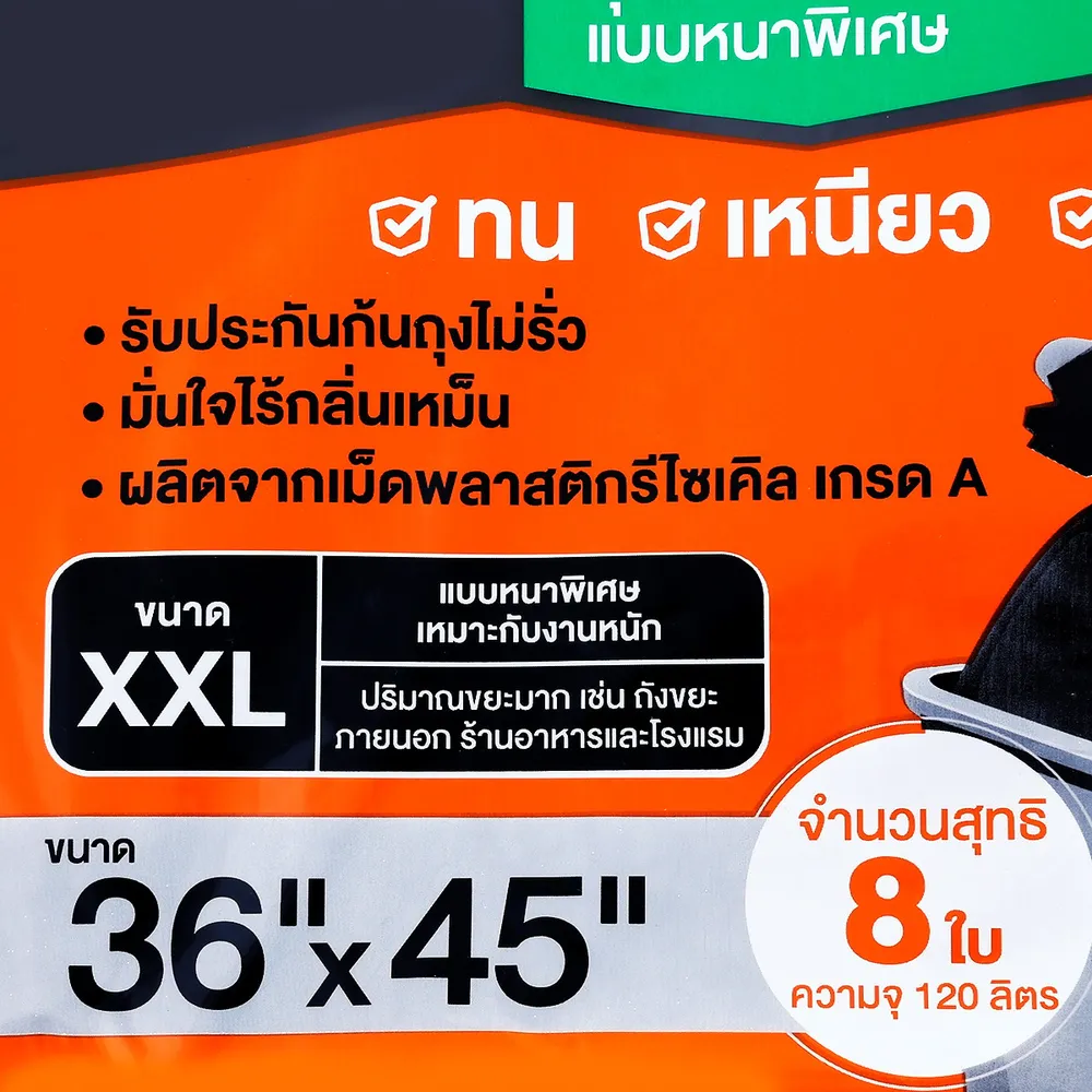 ฮีโร่ ถุงขยะหนา 3 เท่า ขนาด 36 x 45 นิ้ว สีดำ 8 ใบ