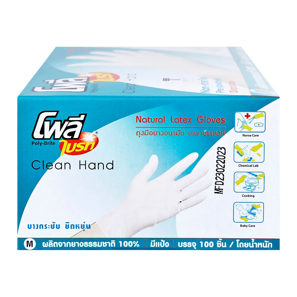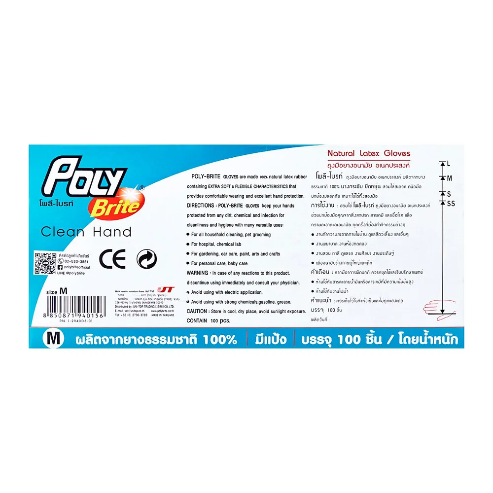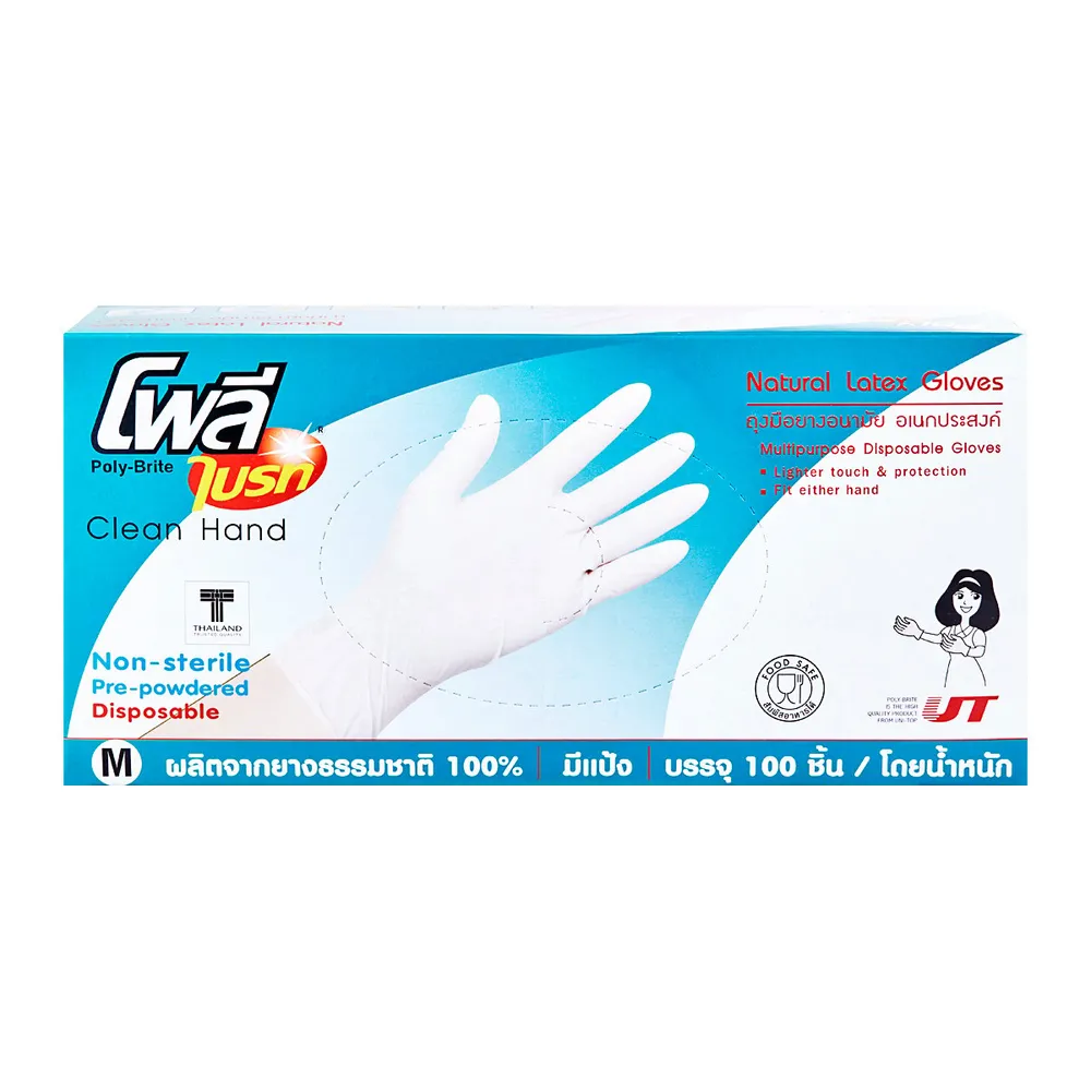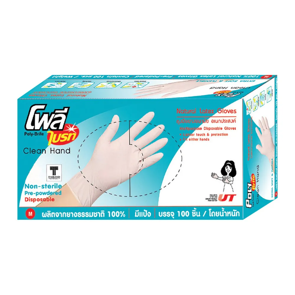 โพลี ไบรท์ ถุงมือยางอนามัยอเนกประสงค์ รุ่น Extra Thin แพ็ค 100 ชิ้น