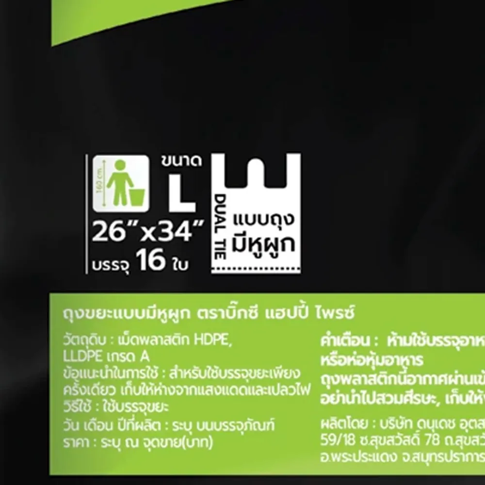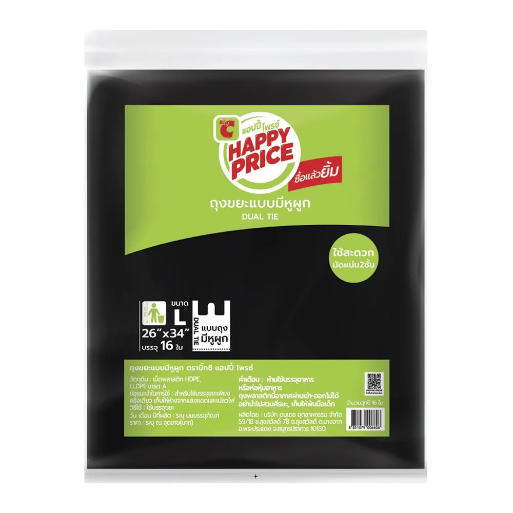 บิ๊กซี แฮปปี้ ไพรซ์ ถุงขยะแบบมีหูผูก ขนาด 26 x 34 นิ้ว แพ็ค 16