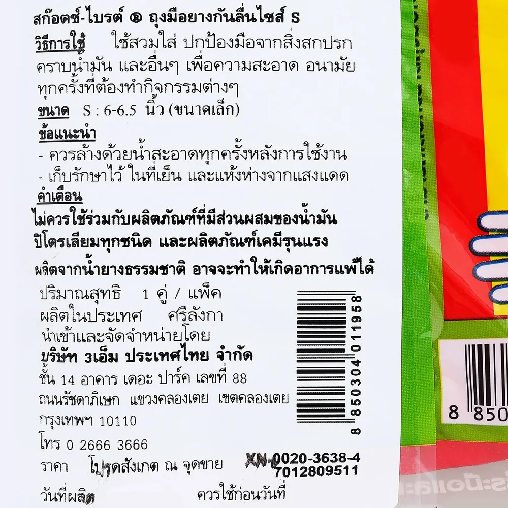 สก๊อตช์-ไบรต์ ถุงมือยางกันลื่น ขนาด S (สินค้าคละสี ไม่สามารถเลือกได้)
