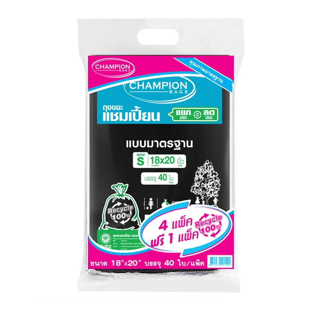แชมเปี้ยน ถุงขยะแบบมาตรฐาน ขนาด S จำนวน 40 ใบ แพ็ค 4+1