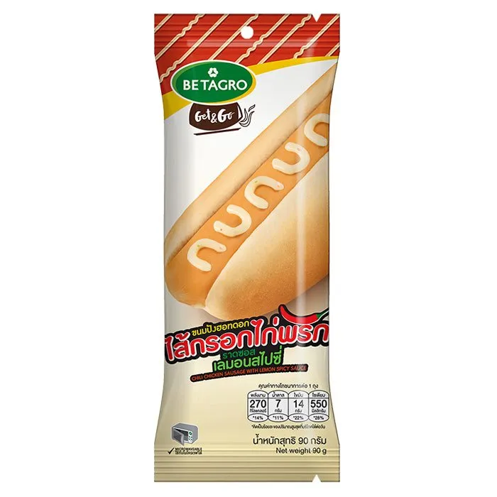 เบทาโกร ขนมปังฮอทดอก ไส้กรอกไก่พริก ราดซอสเลมอนสไปซี่ 90 ก.