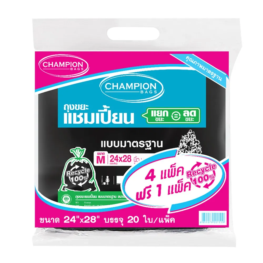 แชมเปี้ยน ถุงขยะแบบมาตรฐาน ขนาด M จำนวน 20 ใบ แพ็ค 4+1