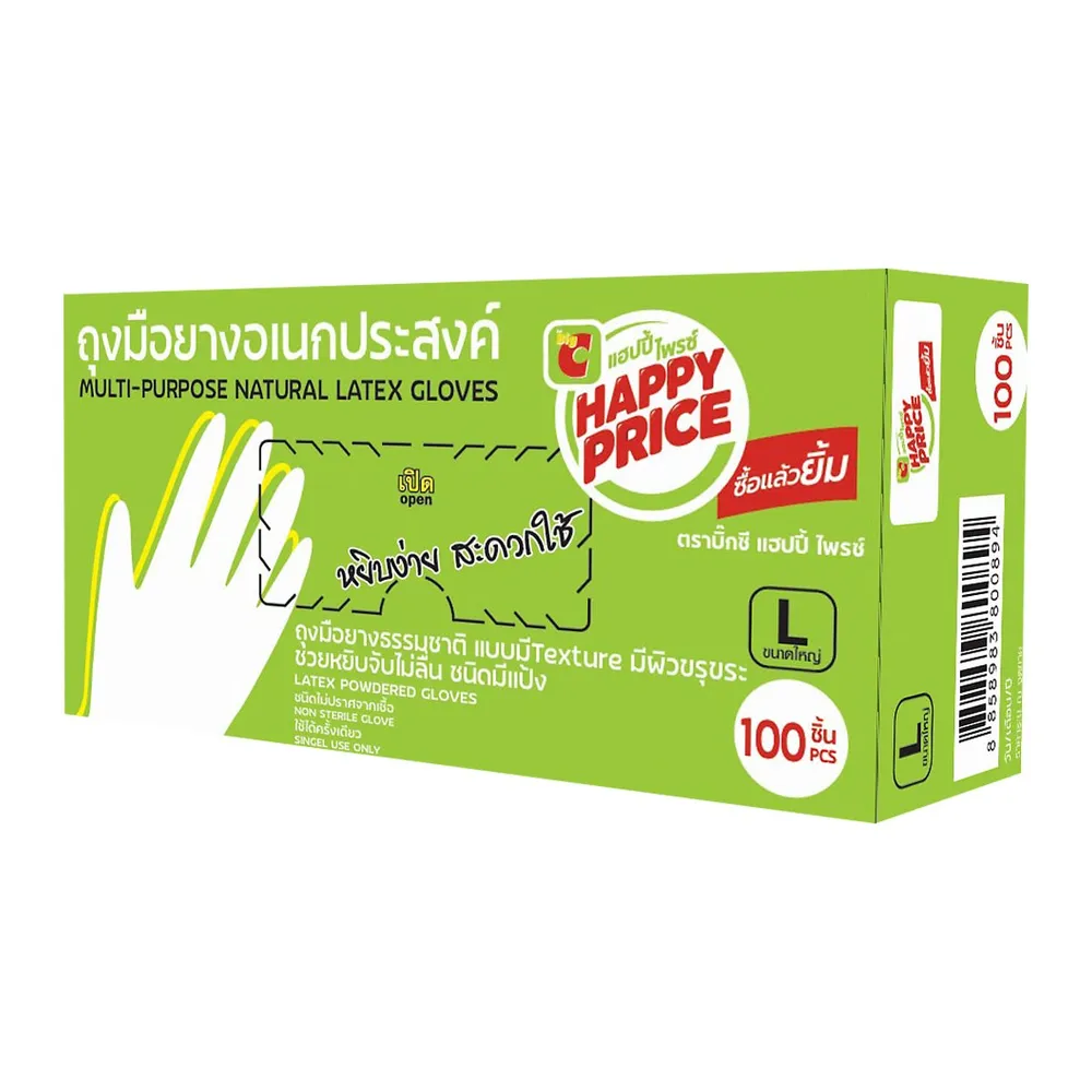 บิ๊กซี แฮปปี้ ไพรซ์ ถุงมือยาง ขนาด L แพ็ค 100 ชิ้น สีขาว