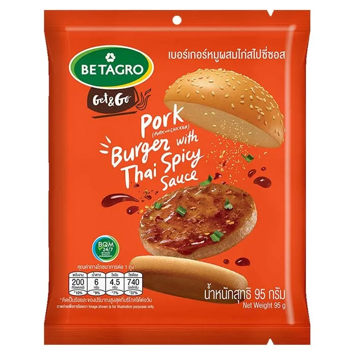 เบทาโกร เบอร์เกอร์หมูผสมไก่สไปซี่ซอส 95 ก.