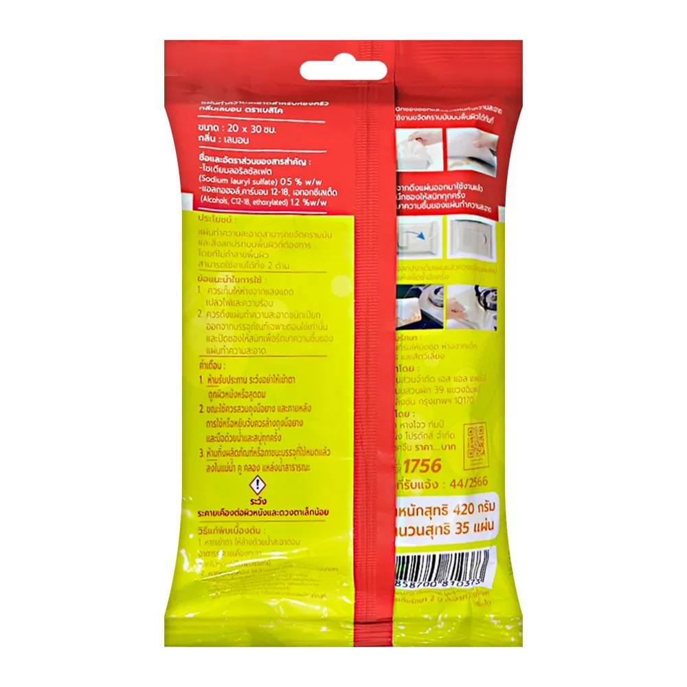 เบสิโค แผ่นทำความสะอาดสำหรับห้องครัว กลิ่นเลมอน 20x30 ซม. 25 แผ่น