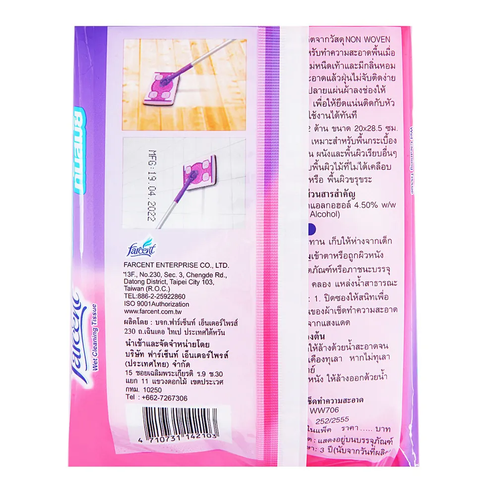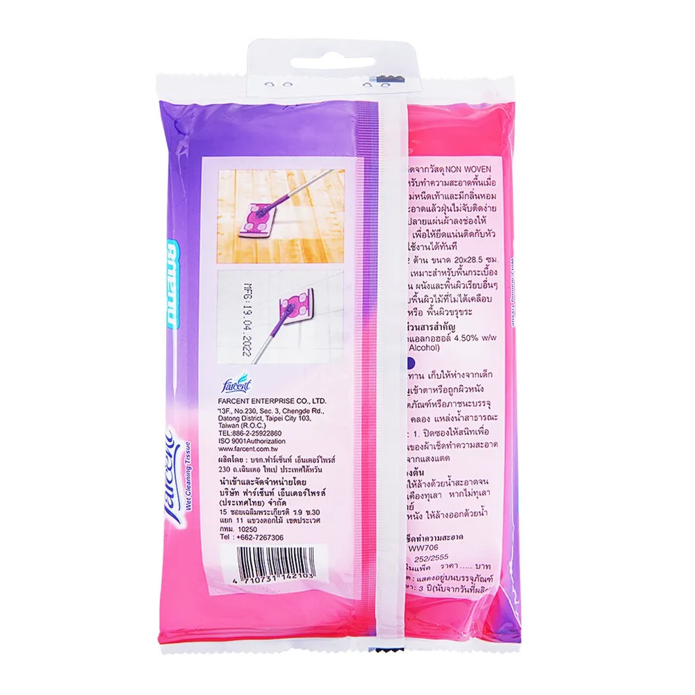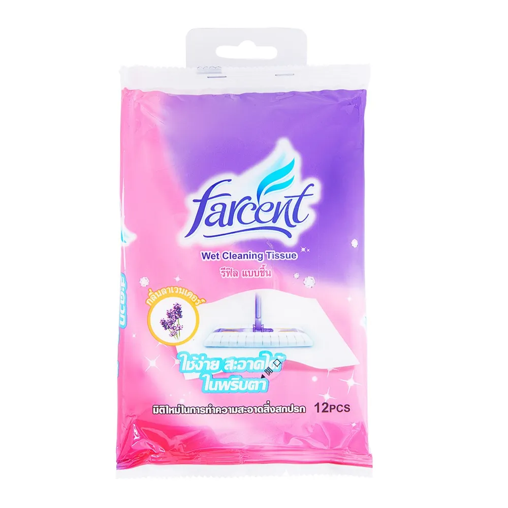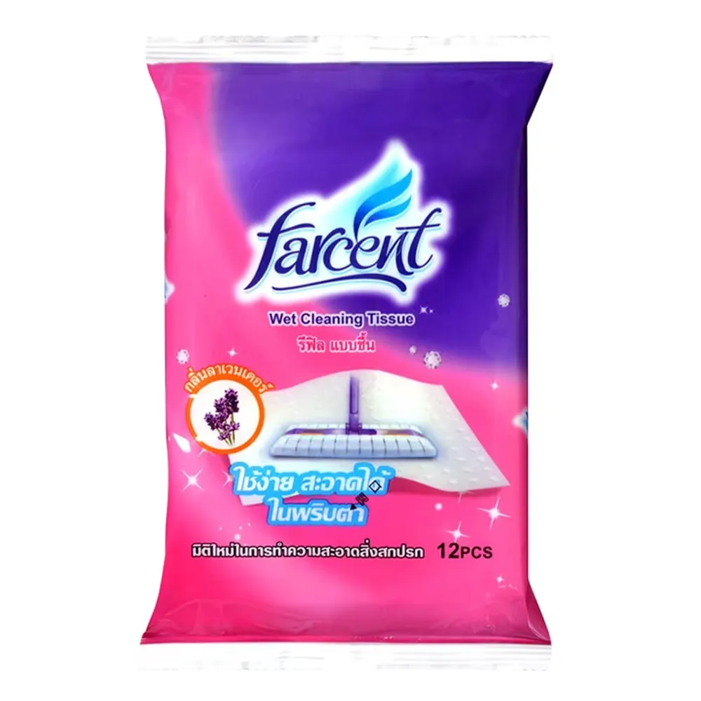 <p>ฟาร์เซ็นท์ รีฟิลผ้าชื้น กลิ่นลาเวนเดอร์<br /><br />ฟาร์เซ็นท์ รีฟิล ผ้าชื้น ใช้ร่วมกับไม้ม็อบอเนกประสงค์ ฟาร์เซ็นท์ ช่วยให้บ้านสะอาดง่ายในพริบตา ไม่เปลืองแรง ถูเสร็จแล้วภายในครั้งเดียว น้ำยาเป็นสูตรพิเศษสำหรับทำความสะอาดพื้นโดยเฉพาะ<br /><br />- ช่วยยับยั้งเชื้อโรคแบคทีเรีย 99% จัดการคราบสกปรกหมดจด<br />- ไม่ทิ้งรอยขีดข่วน สามารถใช้งานได้หลายพื้นผิว&nbsp;อาทิไม้, กระเบื้อง, หินอ่อน, ปาร์เก้ เป็นต้น<br />- สะอาดหมดจดทุกซอกมุม หมดปัญหาเรื่อง ฝุ่น และคราบกวนใจ<br />- กลิ่นลาเวนเดอร์ หอมสดชื่น ผ้าสามารถใช้ได้ 2 ด้าน<br /><br />*ภาพประกอบใช้เพื่อการโฆษณาเท่านั้น</p>
