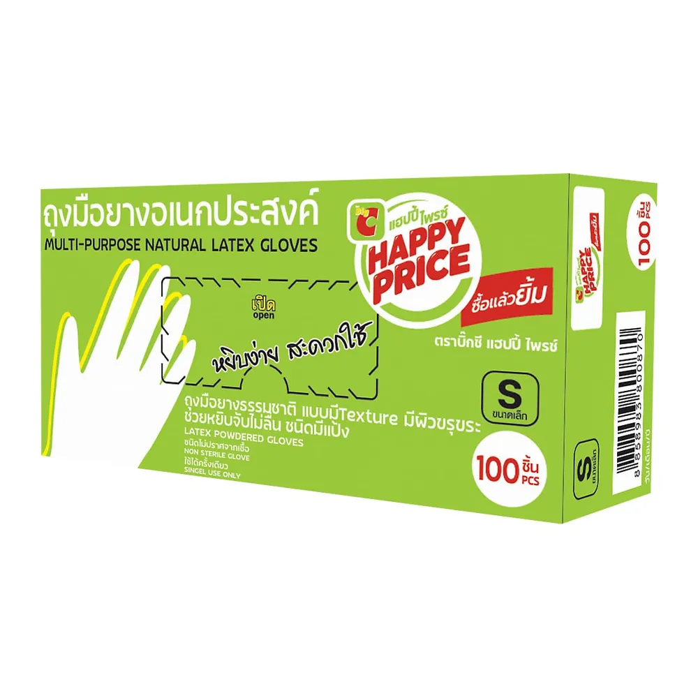 บิ๊กซี แฮปปี้ ไพรซ์ ถุงมือยาง ขนาด S แพ็ค 100 ชิ้น สีขาว