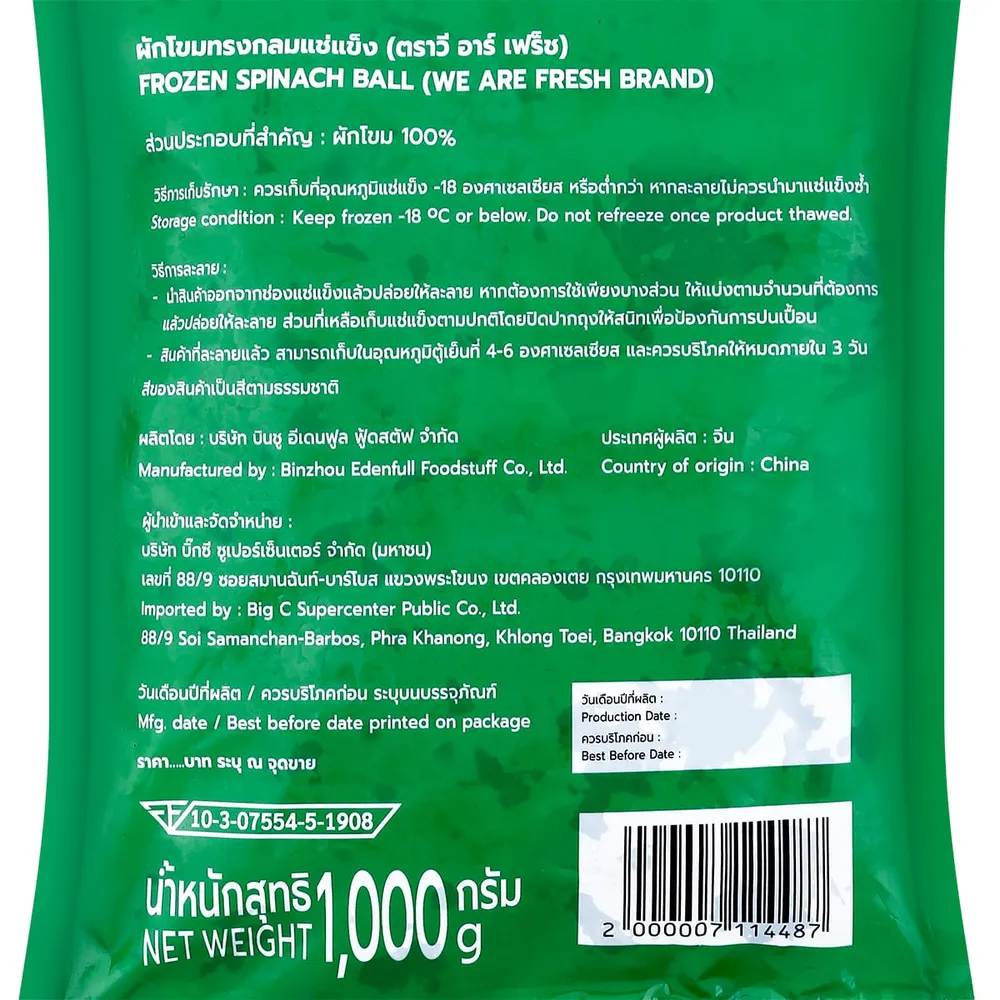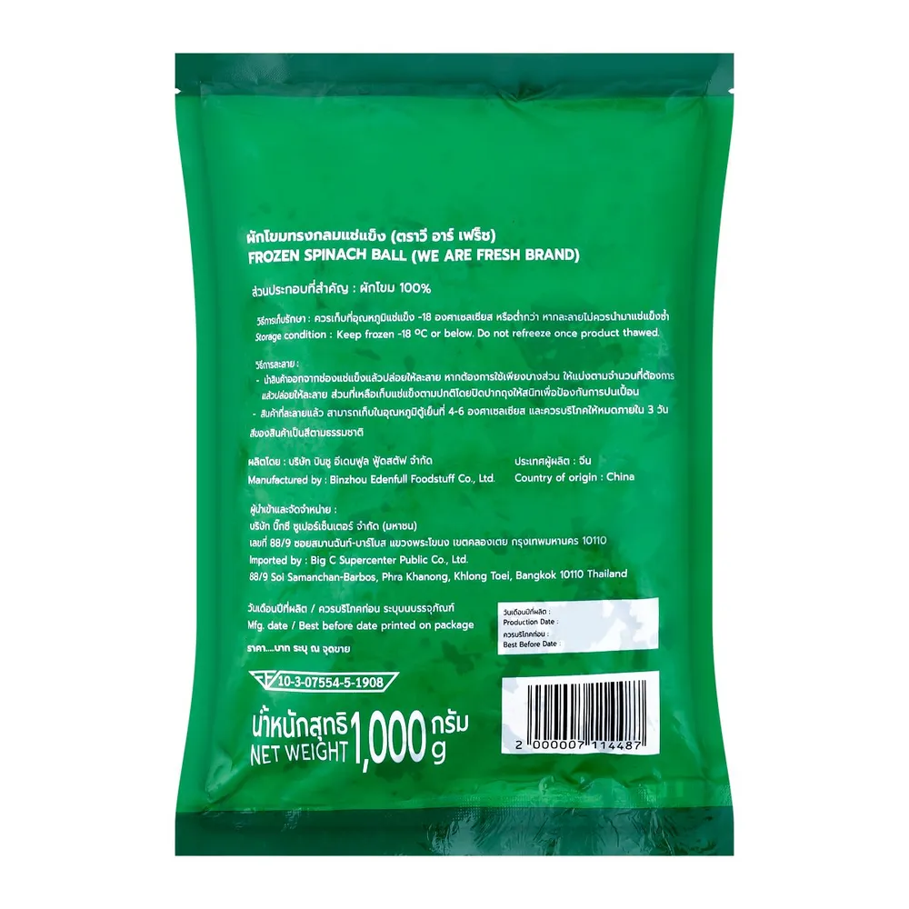 วี อาร์ เฟร็ช ผักโขมทรงกลมแช่แข็ง 1 กก.