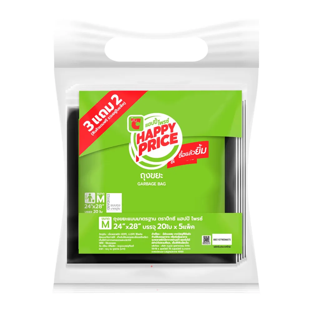 บิ๊กซี แฮปปี้ ไพรซ์ ถุงขยะแบบมาตรฐาน 24 x 28 นิ้ว 20 ใบ x 5 แพ็ค