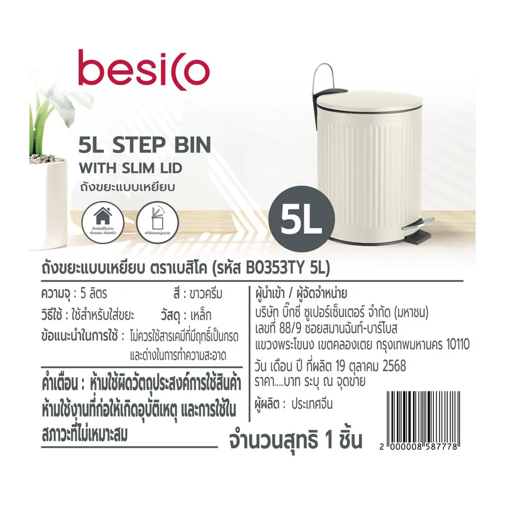 เบสิโค ถังขยะขาเหยียบ 5 ล. รุ่น B0353TY สีครีม