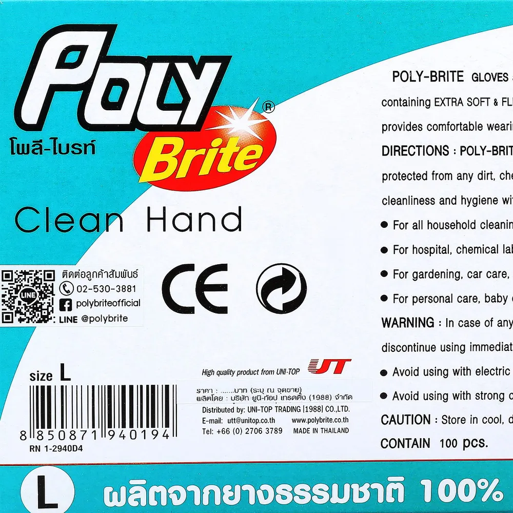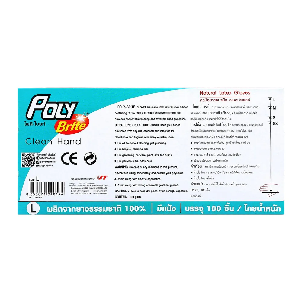 โพลี ไบรท์ ถุงมือยางอนามัยอเนกประสงค์ รุ่น Extra Thin ขนาด L แพ็ค 100 ชิ้น