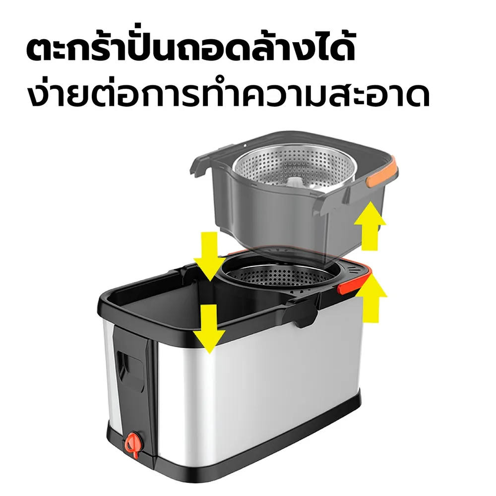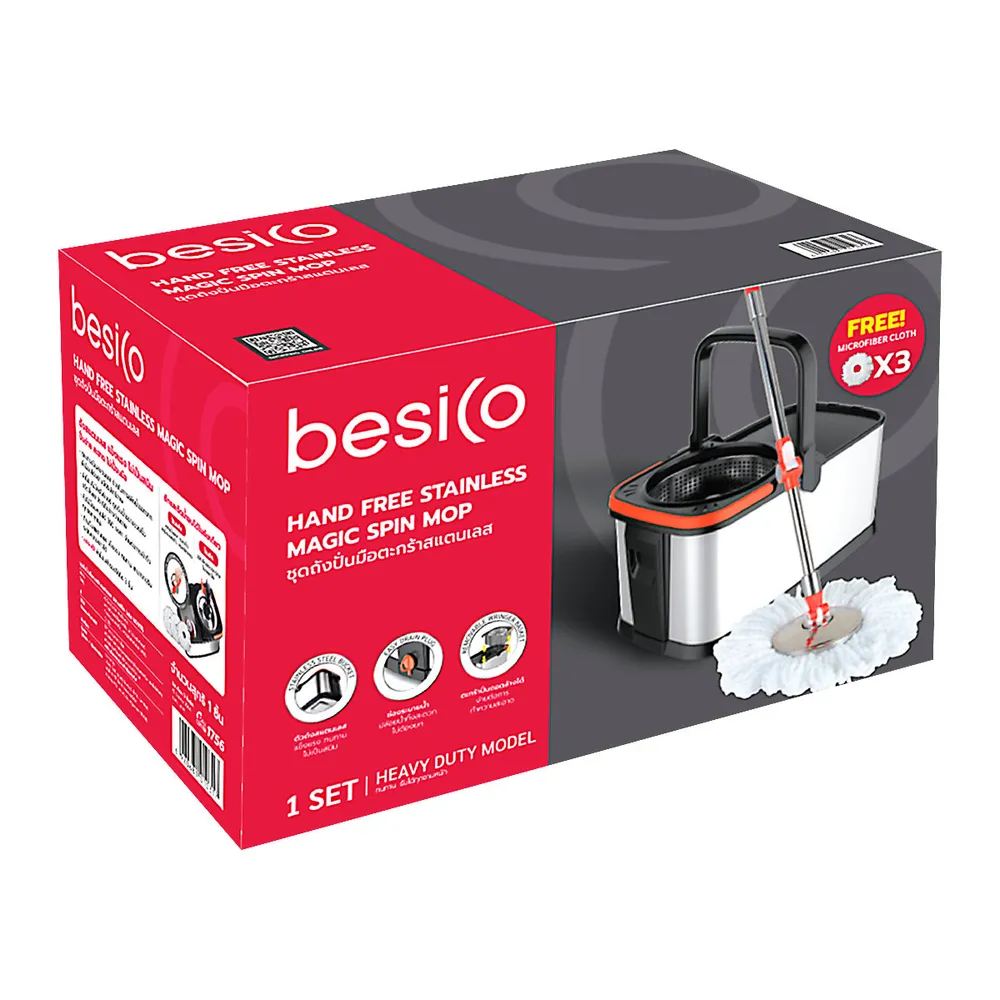 <p>เบสิโค ชุดถังปั่นมือตระกร้าสแตนเลส สำหรับถูพื้น<br />