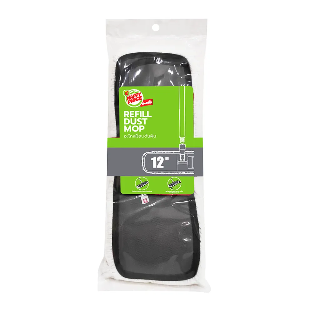 บิ๊กซี แฮปปี้ ไพรซ์ ม็อบดันฝุ่น 12 นิ้วใช้ทำความสะอาดพื้นผิวทั่วไป ดูดซับน้ำได้ดีเก็บเศษฝุ่นและเส้นผมได้หมดจด ใช้ได้ทั้งแบบแห้งและแบบเปียก ควรใช้ร่วมกับน้ำยาดันฝุ่น หลังการใช้งานซักทำตวามสะอาดแล้วผึ่งให้แห้ง ควรเก็บไว้ในที่ร่ม เพื่อยีดอายุการใช้งาน<br />