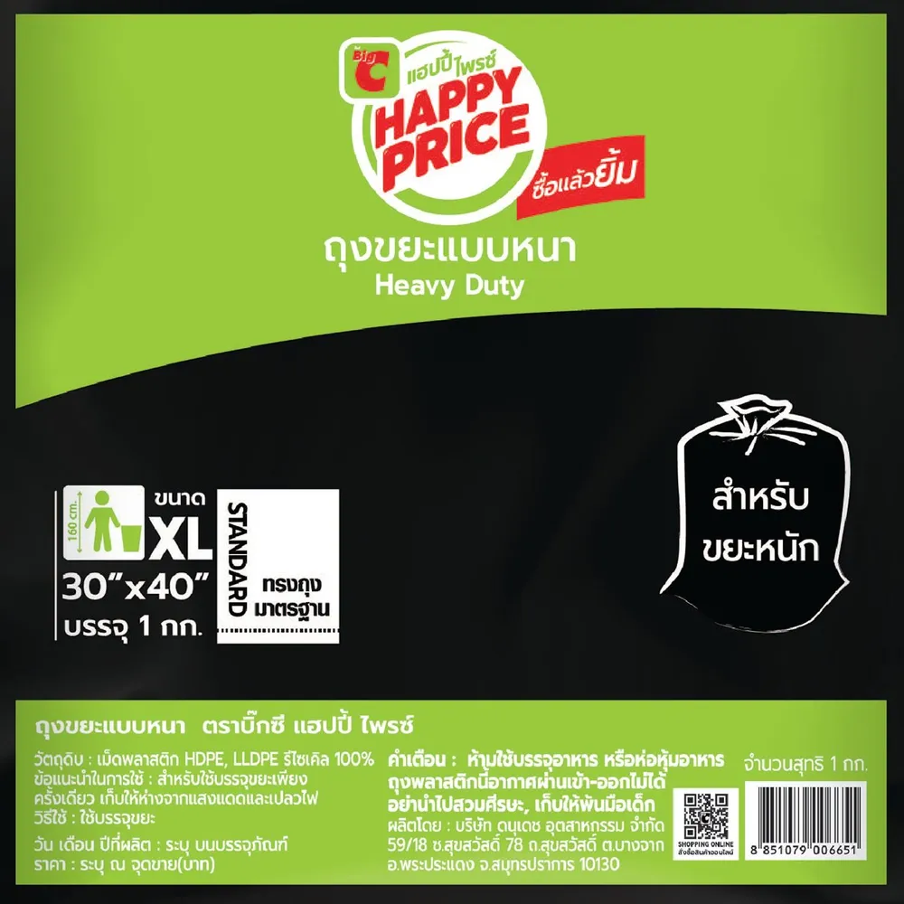 บิ๊กซี แฮปปี้ ไพรซ์ ถุงขยะแบบหนา ขนาด XL 30 x 40 นิ้ว สีดำ