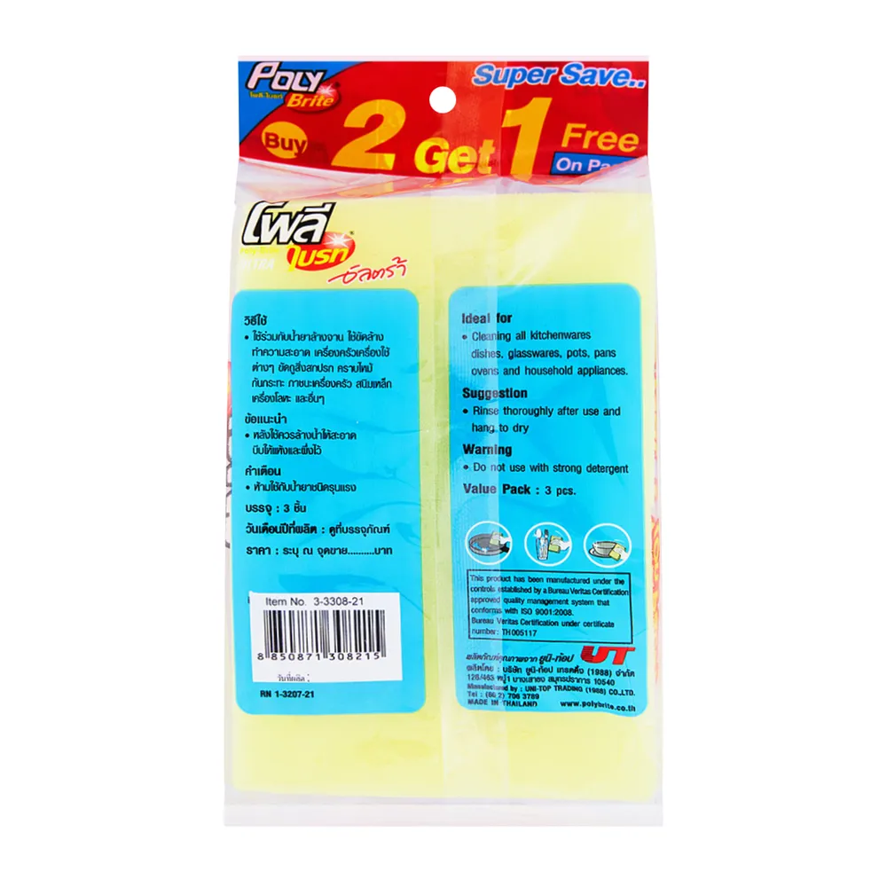 โพลี ไบร์ท อัลตร้า ใยขัดอเนกประสงค์ เนื้อละเอียด รุ่น 308-21 แพ็ค 2