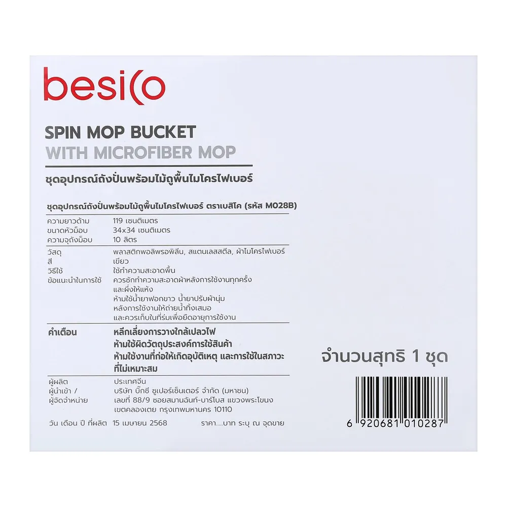- ชุดถังปั่น วัสดุ: พลาสติก / ผ้าไมโครไฟเบอร์ / ท่อสเตนเลส<br />