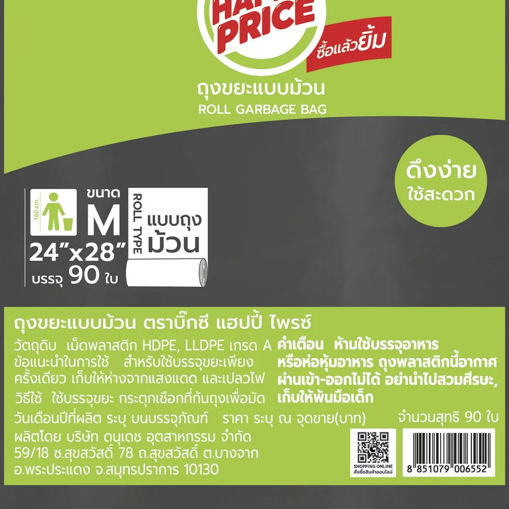 บิ๊กซี แฮปปี้ ไพรซ์ ถุงขยะแบบม้วน ขนาด M (24" x 28") แพ็ค 90 ใบ