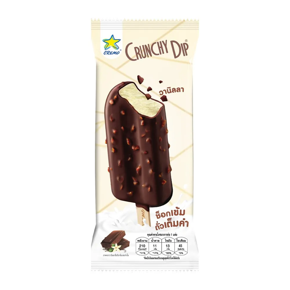 ครีโม ครันชี่ดิ๊บ วานิลลา ไอศครีมวานิลลาเคลือบช็อกโกแลตและถั่ว 70 ก.