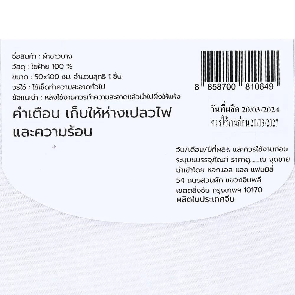 เอสแอล แฟมิลี่ ผ้าเช็ดอเนกประสงค์ ขนาด 50x100 ซม. สีขาว