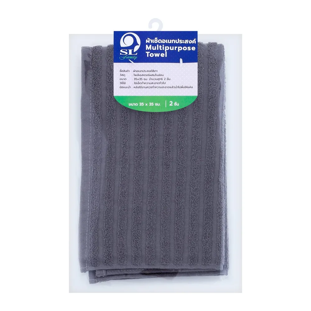 เอสแอล แฟมิลี่ ผ้าเช็ดอเนกประสงค์ ขนาด 35x35 ซม. แพ็ค 2 สีเทา