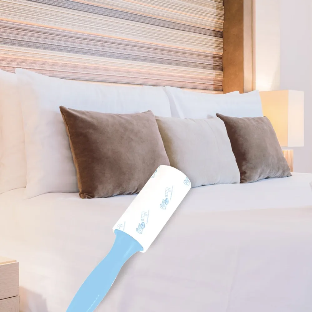- วิธีใช้ กลิ้งลูกกลิ้งเก็บฝุ่นขนลงบนพื้นผิวที่ต้องการ เก็บฝุ่นละออง เส้นผม ขนสัตว์ แล้วฉีกกระดาษกาวที่ใช้แล้วทิ้ง<br />