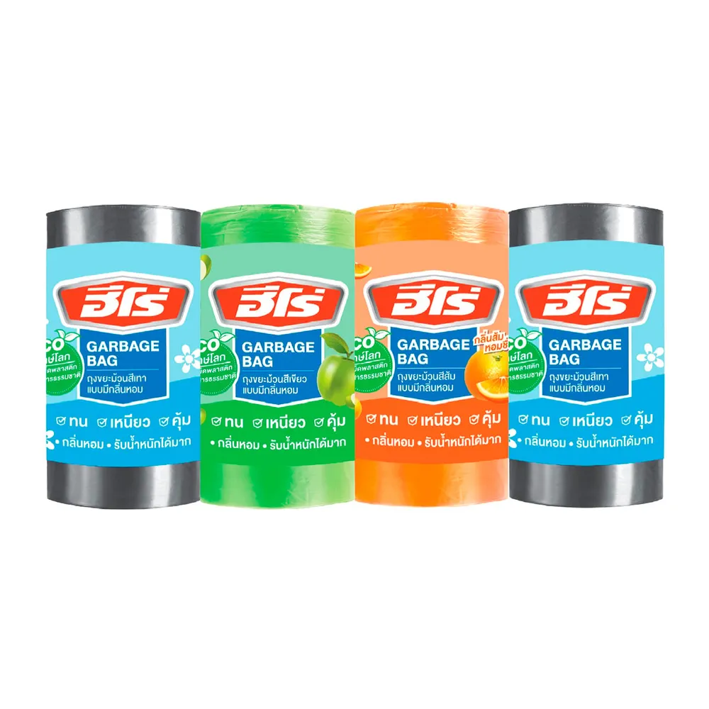 <p>ฮีโร่ ถุงขยะม้วนแบบมีกลิ่นหอม 18 x 20 นิ้ว แพ็ค 4 ม้วน คละสี<br />