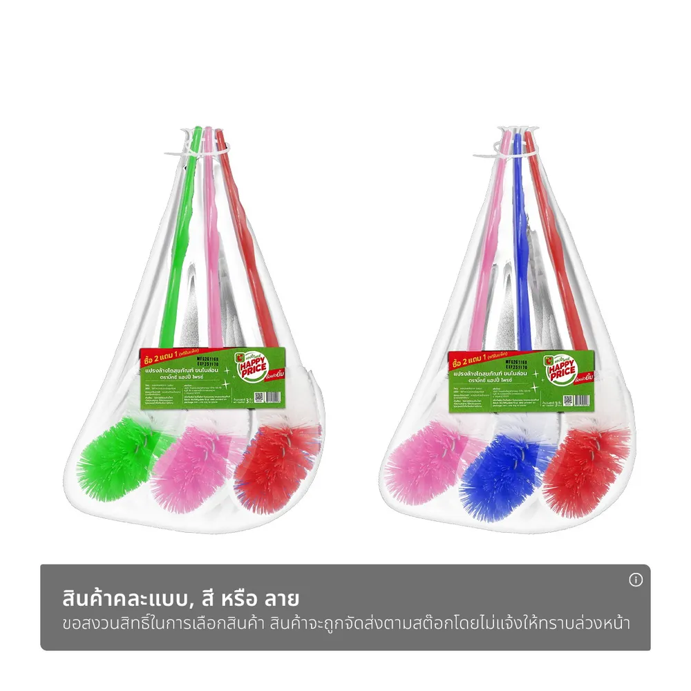 บิ๊กซี แฮปปี้ ไพรซ์ แปรงล้างโถสุขภัณฑ์ขนไนล่อน แพ็ค 2+1 คละสี