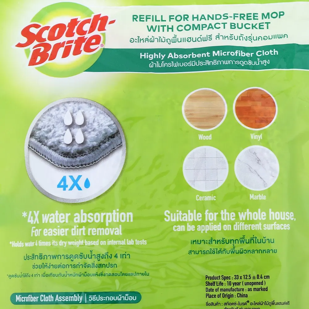 - ดูดซับน้ำได้สูงถึง 4 เท่า *เมื่อเทียบกับน้ำหนักผ้าม็อบแห้งซึ่งทดสอบโดยแล็บภายใน<br />
