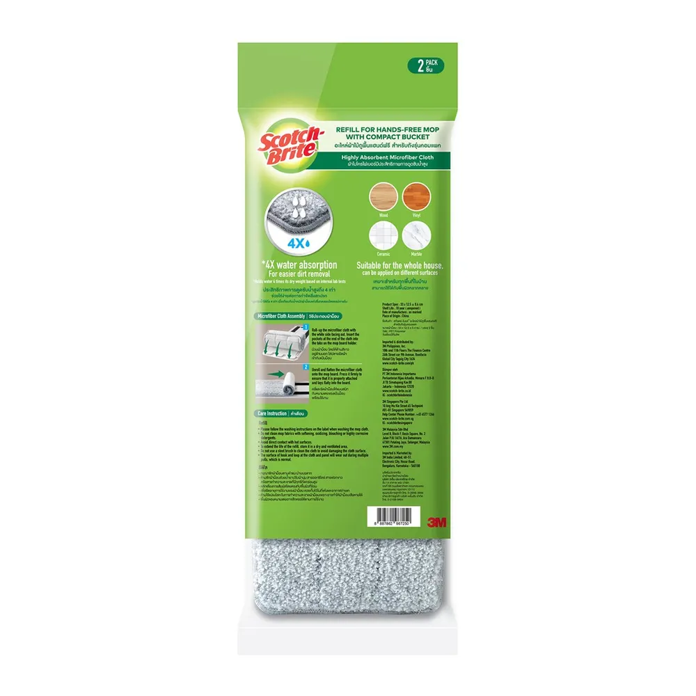 สก๊อตซ์-ไบรต์ อะไหล่ผ้าไม้ถูพื้นแฮนด์ฟรี สำหรับถังรุ่นคอมแพค แพ็ค 2 ชิ้น