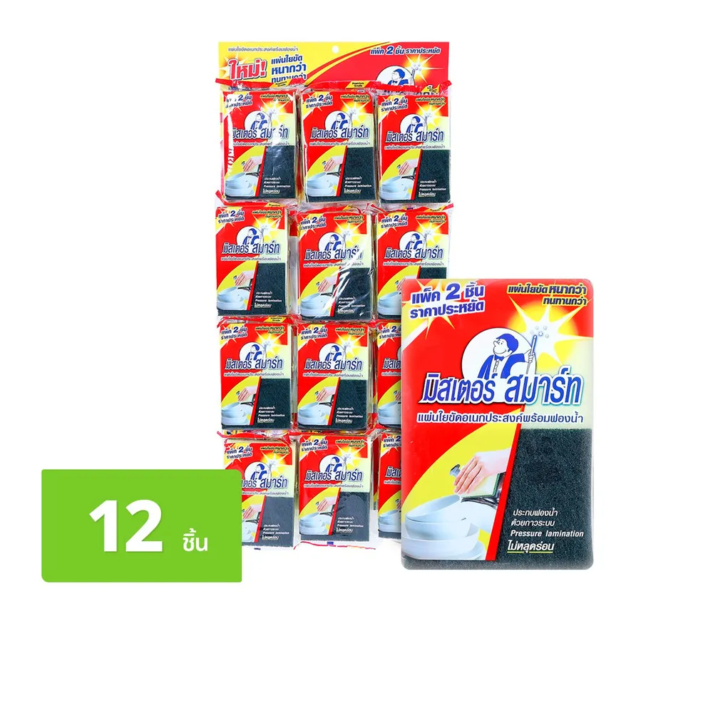 มิสเตอร์สมาร์ท ใยขัดฟองน้ำคู่ แพ็ค 12 ชิ้น