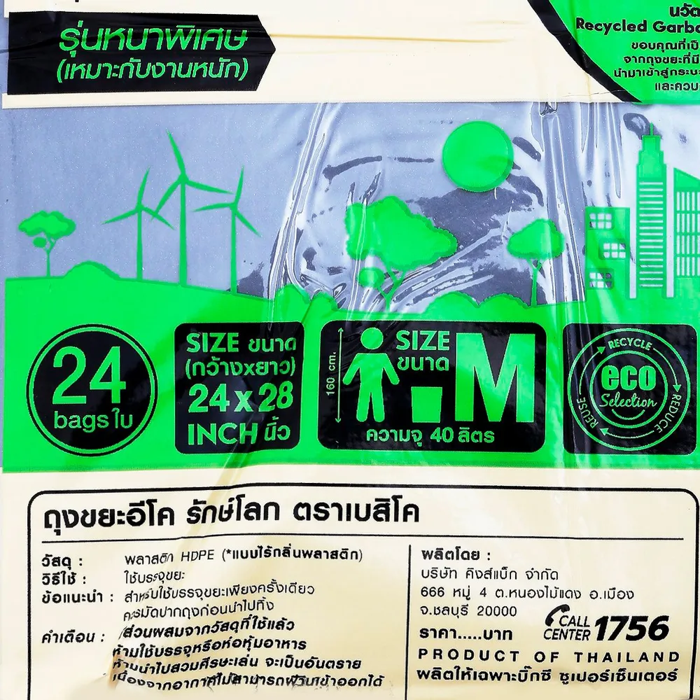 เบสิโค ถุงขยะอีโค รักษ์โลก รุ่นหนาพิเศษ 24 x 28 นิ้ว แพ็ค 24 ใบ
