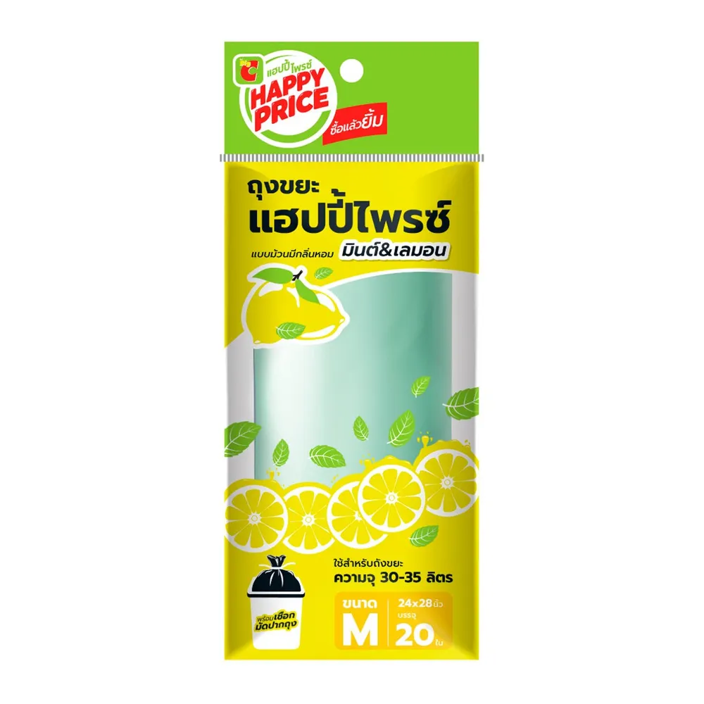 บิ๊กซี แฮปปี้ ไพรซ์ ถุงขยะแบบม้วน กลิ่นมินต์แอนด์เลมอน 24 x 28 นิ้ว แพ็ค 20 ใบ