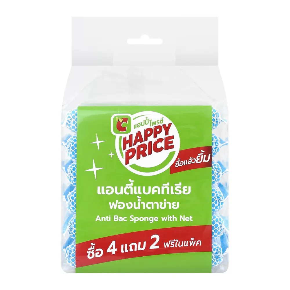 บิ๊กซี แฮปปี้ ไพรซ์ ฟองน้ำตาข่าย Antibac แพ็ค 4+2 ชิ้น