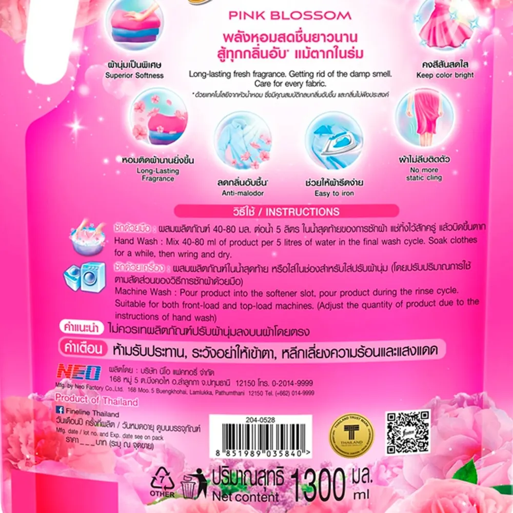 ไฟน์ไลน์ น้ำยาปรับผ้านุ่ม กลิ่นพิ้งค์ บลอสซั่ม 1300 มล.
