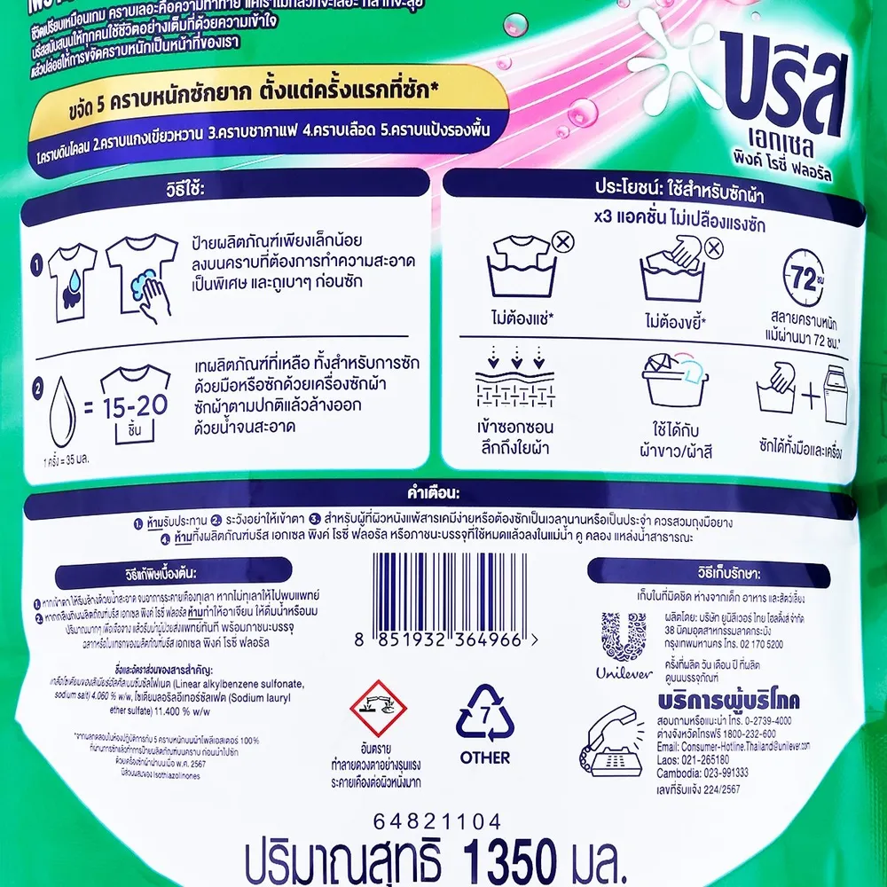 - ช่วยขจัดคราบได้ดีกว่าแบบผงถึง 2 เท่า<br />