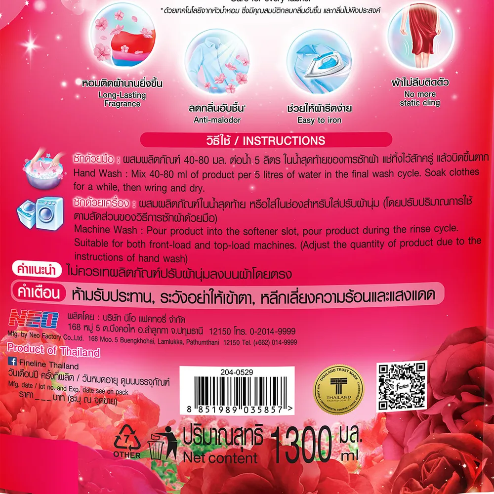 ไฟน์ไลน์ น้ำยาปรับผ้านุ่ม กลิ่นเรด โรแมนซ์ 1300 มล.
