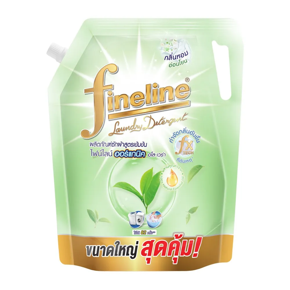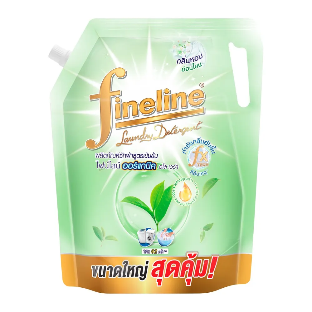 ไฟน์ไลน์ ผลิตภัณฑ์ซักผ้าสูตรเข้มข้น ด้วยส่วนผสมออร์แกนิค อโล เวร่า จากธรรมชาติ พร้อมพลังสะอาด ขจัดคราบฝังลึกได้ง่ายขึ้น ด้วยพลังการขจัดคราบฝังแน่น แค่ 1/2 ฝา ไม่ว่าจะเป็นคราบอาหาร คราบชา กาแฟ คราบโคลน หรือแม้แต่คราบดำบนถุงเท้า สามารถทำความสะอาดได้กับผ้าหลากหลายชนิด ล้างออกง่าย กลิ่นหอมติดผ้า ช่วยลดกลิ่นอับชื้น ผ่านการทดสอบว่าไม่ก่อให้เกิดการระคายเคือง<br />