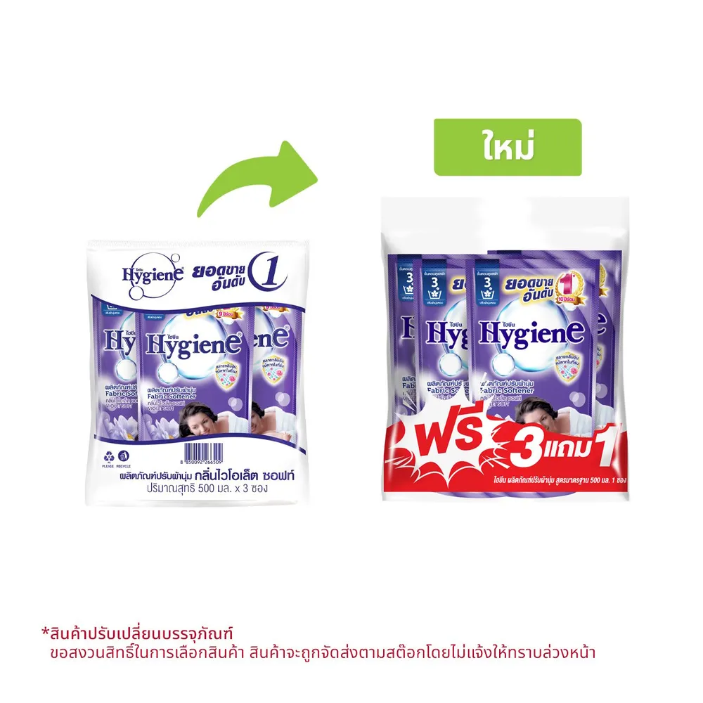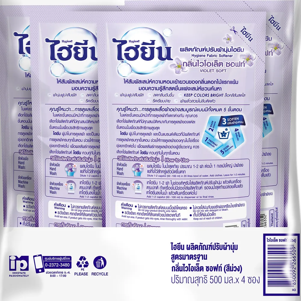 ไฮยีน น้ำยาปรับผ้านุ่ม กลิ่นไวโอเล็ต ซอฟท์ 500 มล. แพ็ค 3