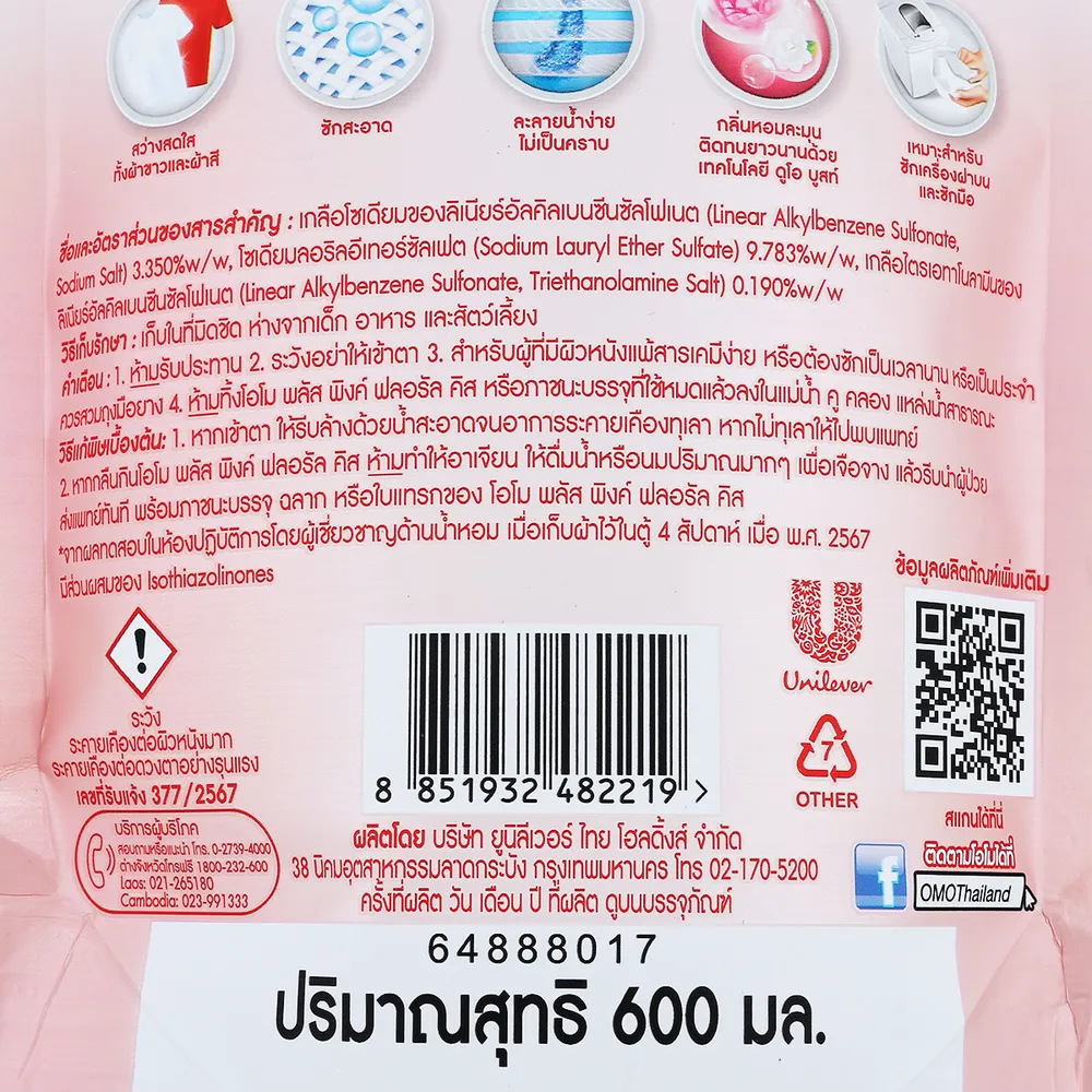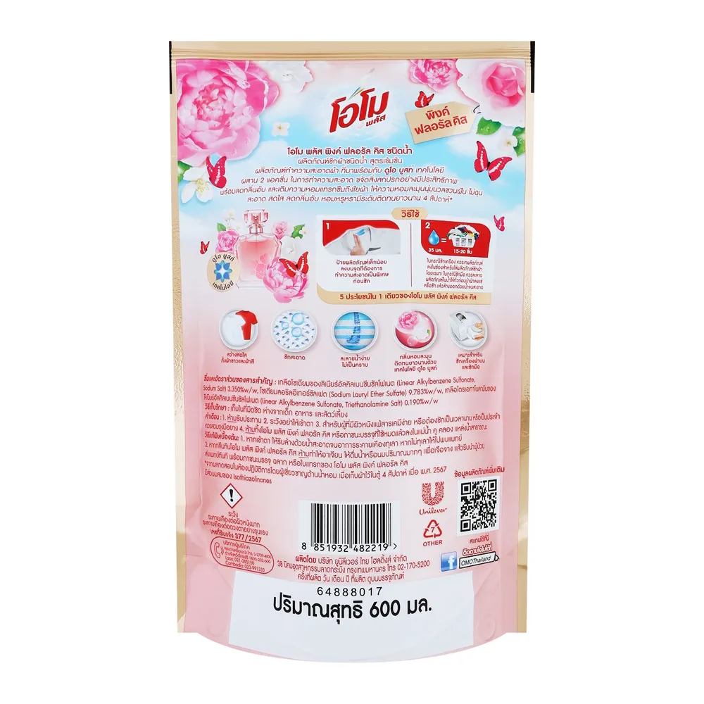 โอโม พลัส ผลิตภัณฑ์ซักผ้าสูตรเข้มข้น กลิ่น พิงค์ฟลอรัล 600 มล.
