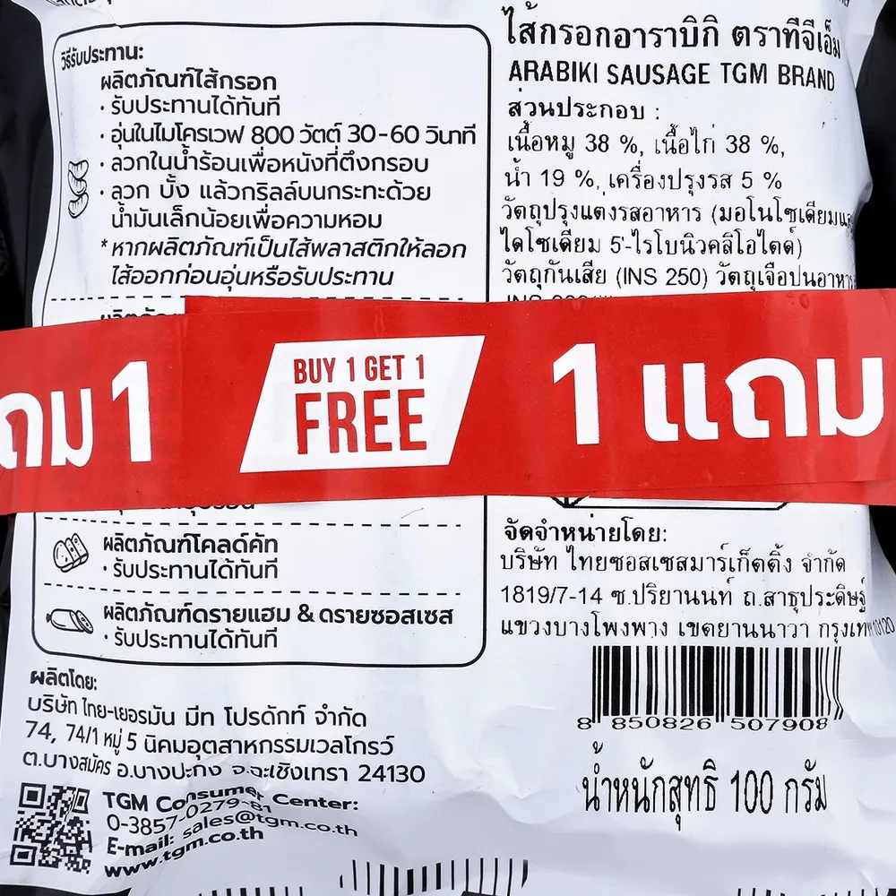 ทีจีเอ็ม ไส้กรอกอาราบิกิ 100 ก. แพ็ค 1+1