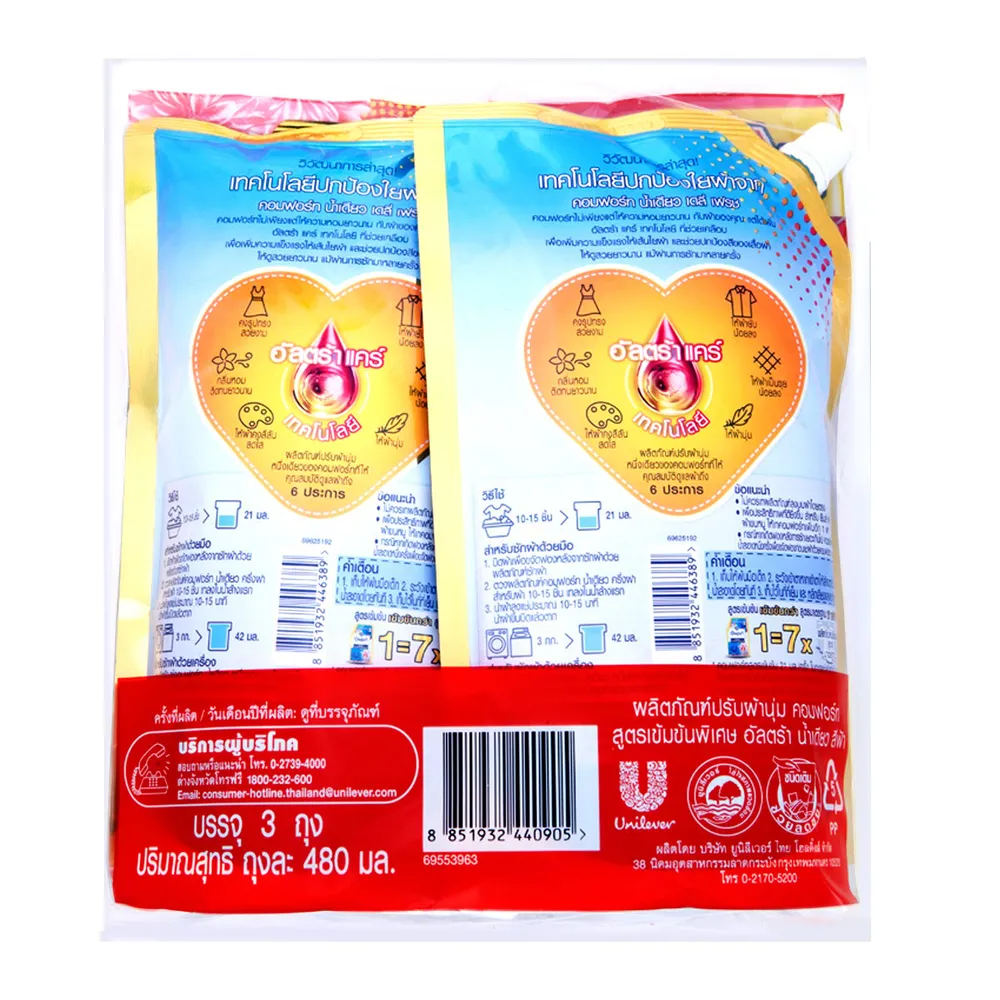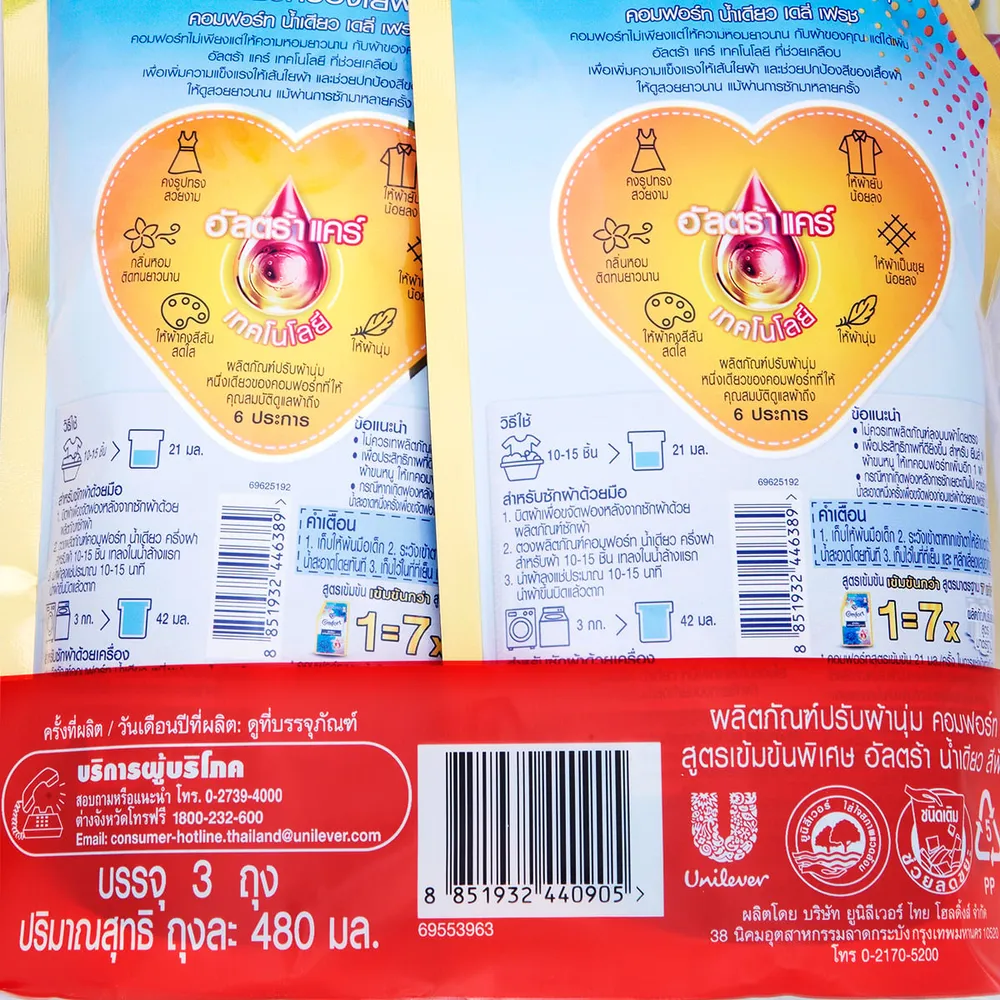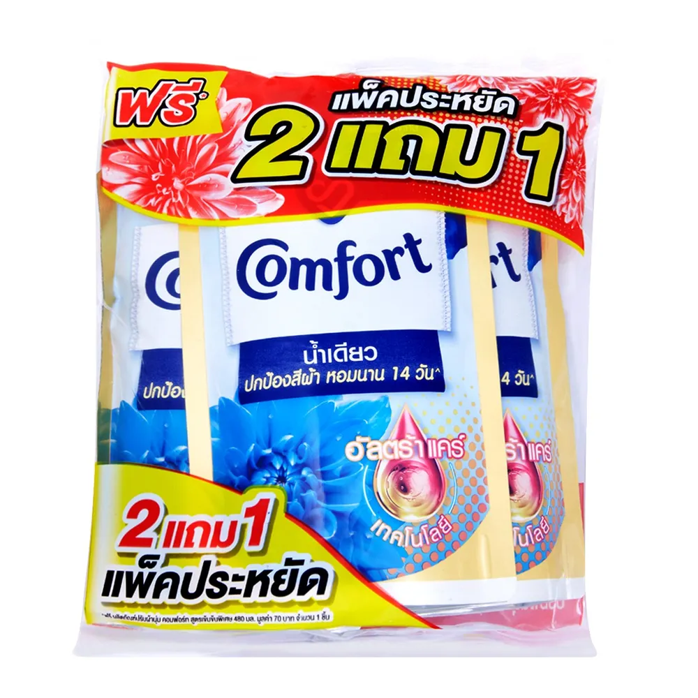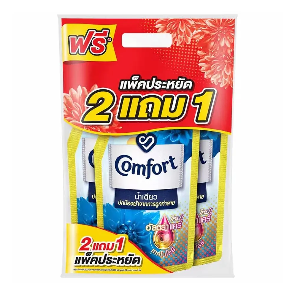 คอมฟอร์ท น้ำเดียว เดลี่เฟรช น้ำยาปรับผ้านุ่ม สูตรเข้มข้นพิเศษ 480 มล. แพ็ค 2+1