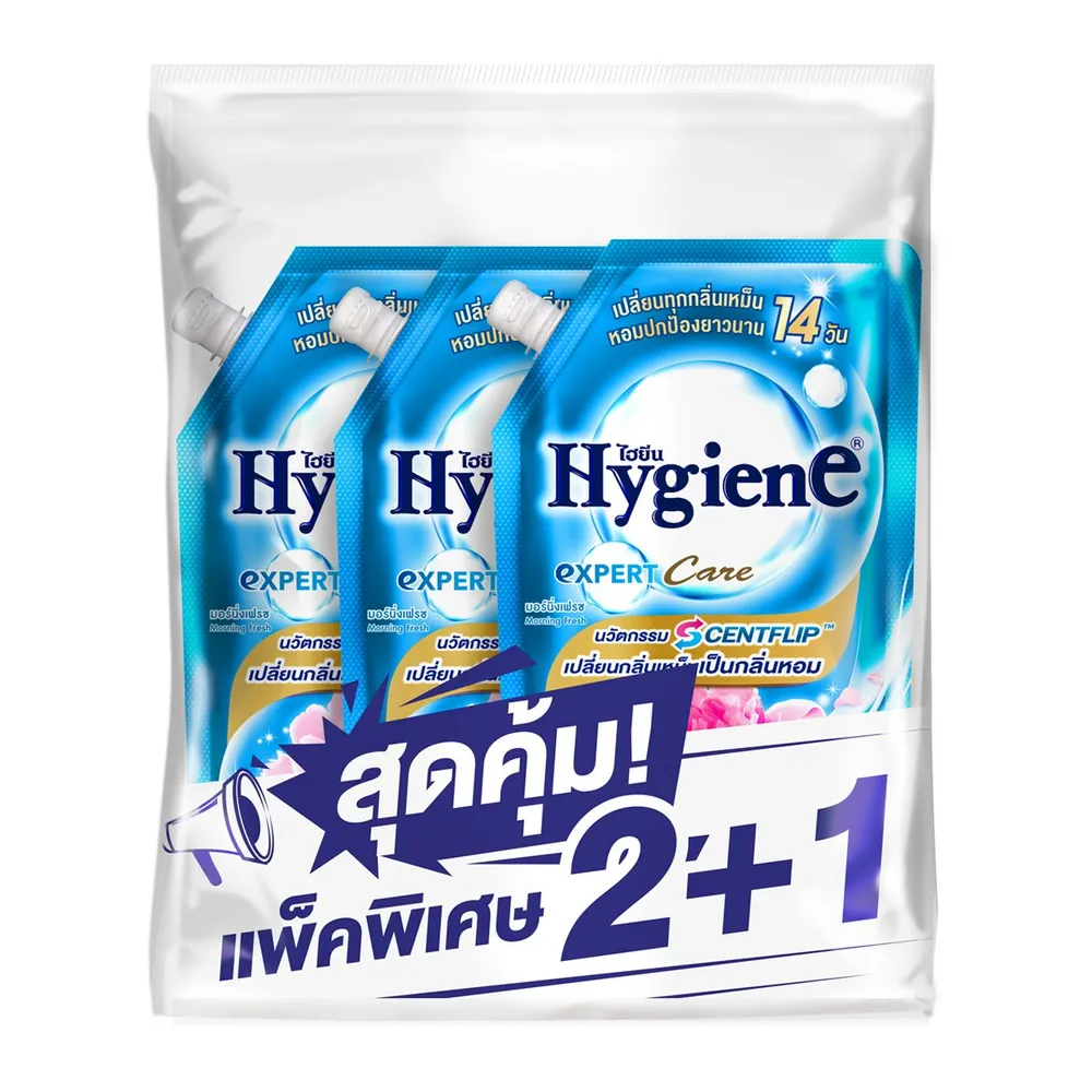 ไฮยีน เอ็กซ์เพิร์ท แคร์ น้ำยาปรับผ้านุ่มสูตรเข้มข้นพิเศษ กลิ่นมอร์นิ่งเฟรช 480 มล. แพ็ค 2+1