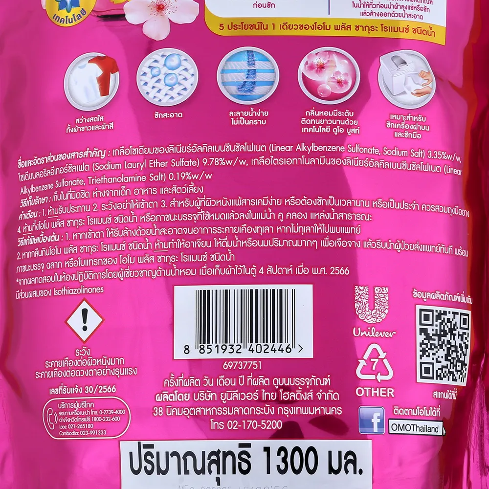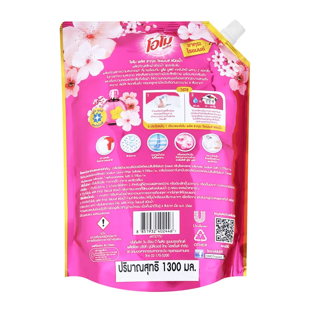 - โอโม พลัส น้ำยาซักผ้าสูตรเข้มข้น กลิ่นซากุระ โรแมนซ์<br />