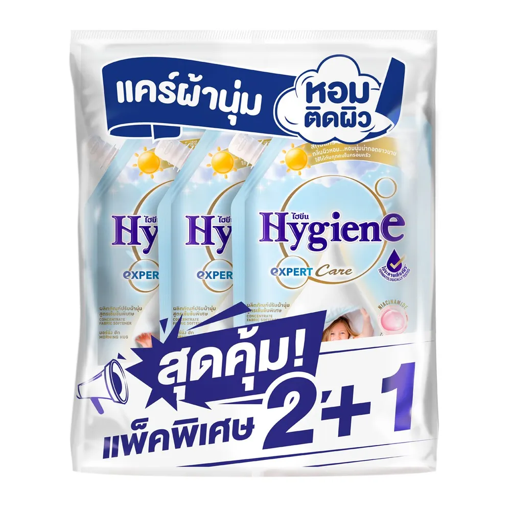 ไฮยีน เอ็กซ์เพิร์ท แคร์ น้ำยาปรับผ้านุ่มสูตรเข้มข้นพิเศษ มอร์นิ่ง ฮัก 480 มล. แพ็ค 2+1