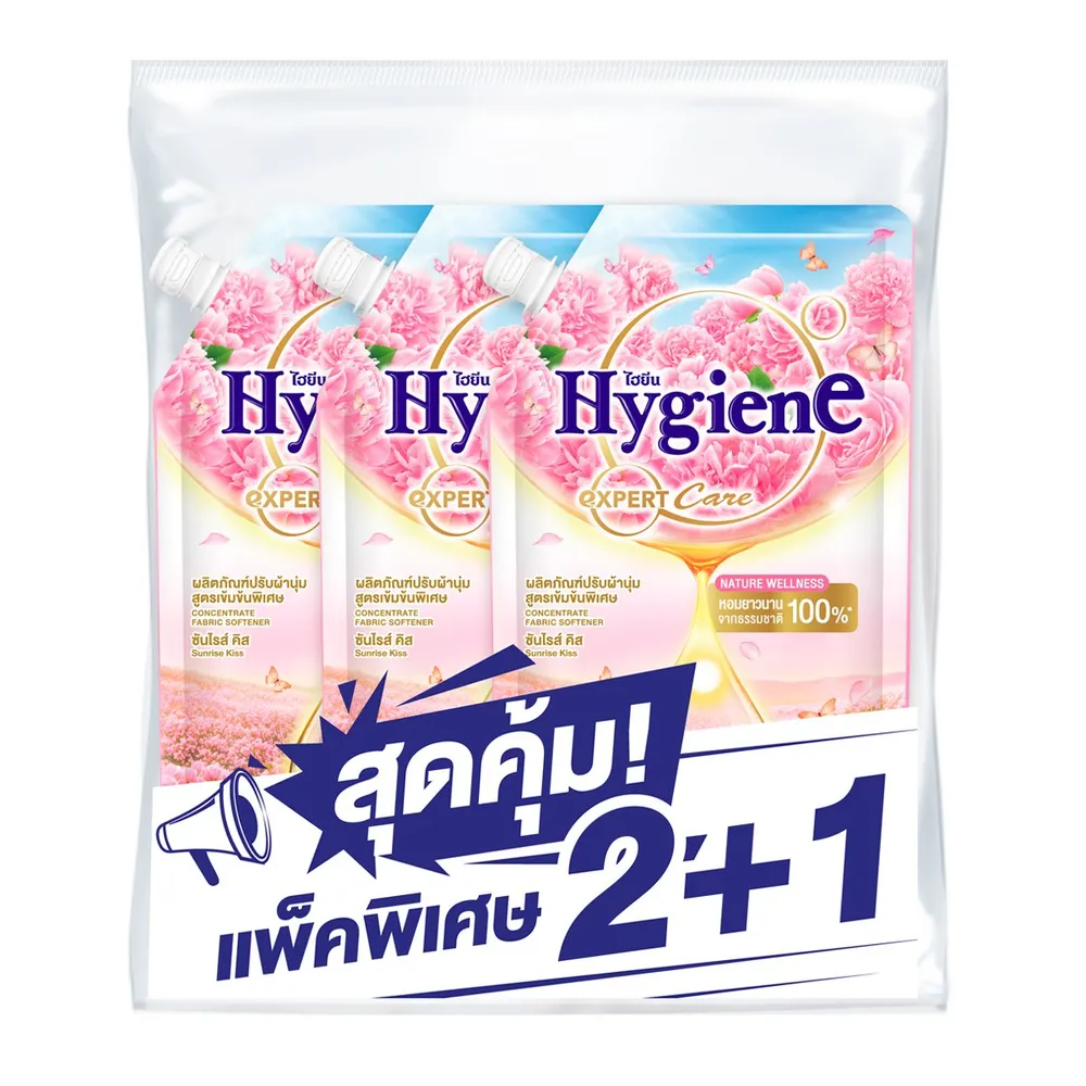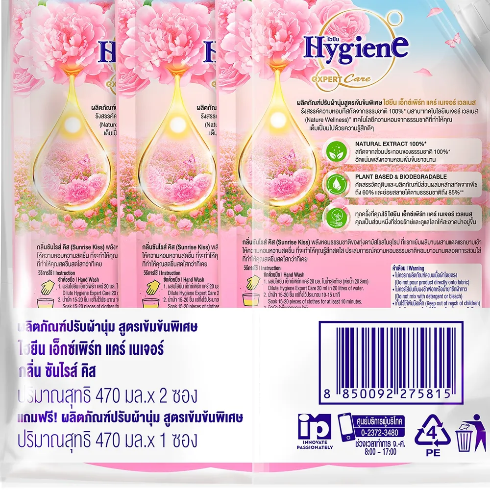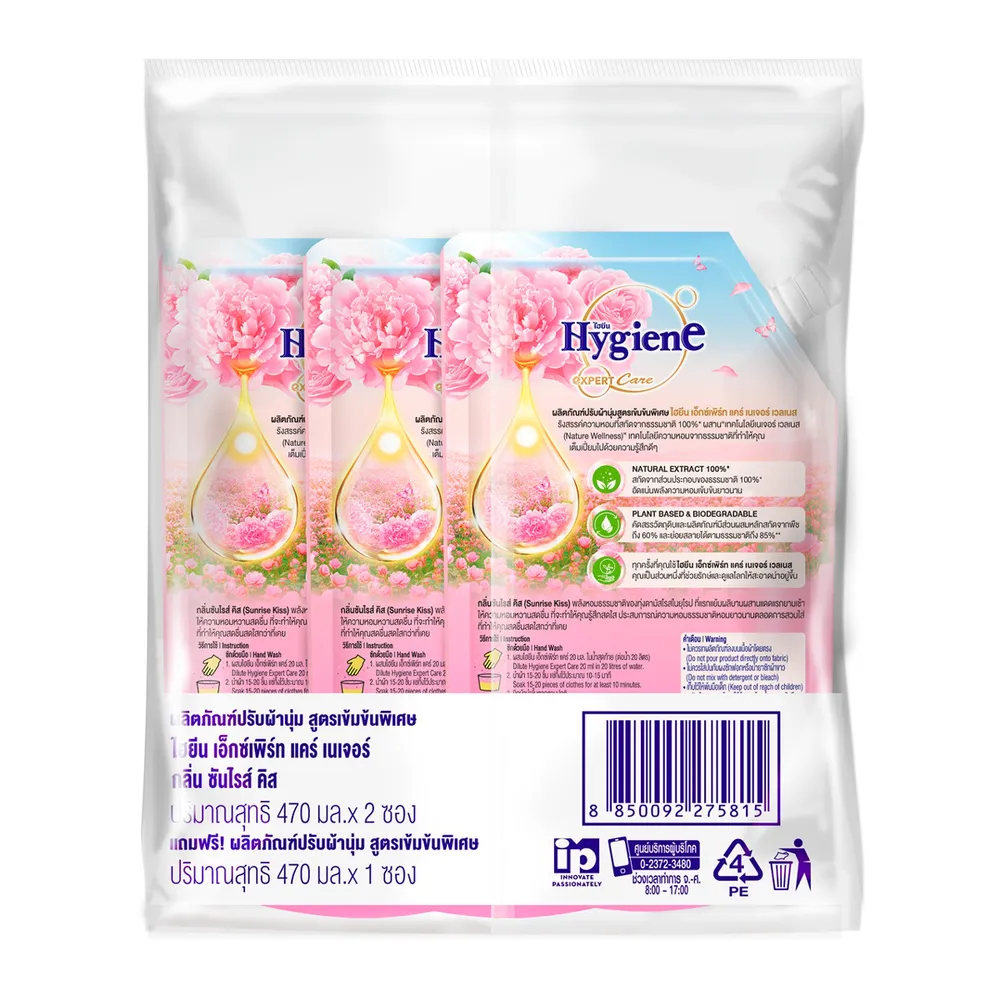 ไฮยีน เอ็กซ์เพิร์ท แคร์ ไลฟ์ เนเจอร์ น้ำยาปรับผ้านุ่ม สูตรเข้มข้นพิเศษ กลิ่นซันไรส์ คิส 470 มล. แพ็ค 2+1