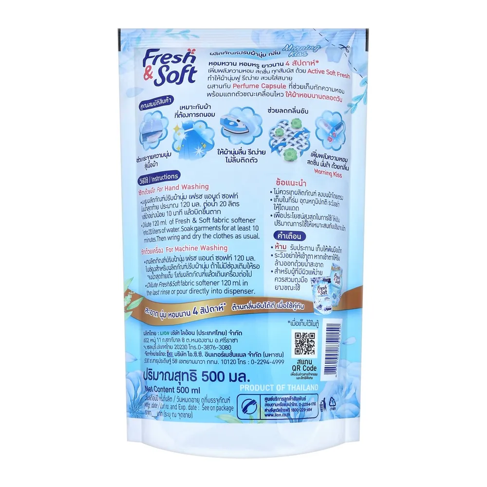 เฟรชแอนด์ซอฟท์ น้ำยาปรับผ้านุ่ม กลิ่นมอร์นิ่งคิส 500 มล.