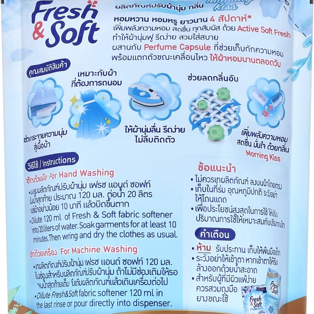 <p>เฟรชแอนด์ซอฟท์ น้ำยาปรับผ้านุ่ม กลิ่นมอร์นิ่งคิส<br />