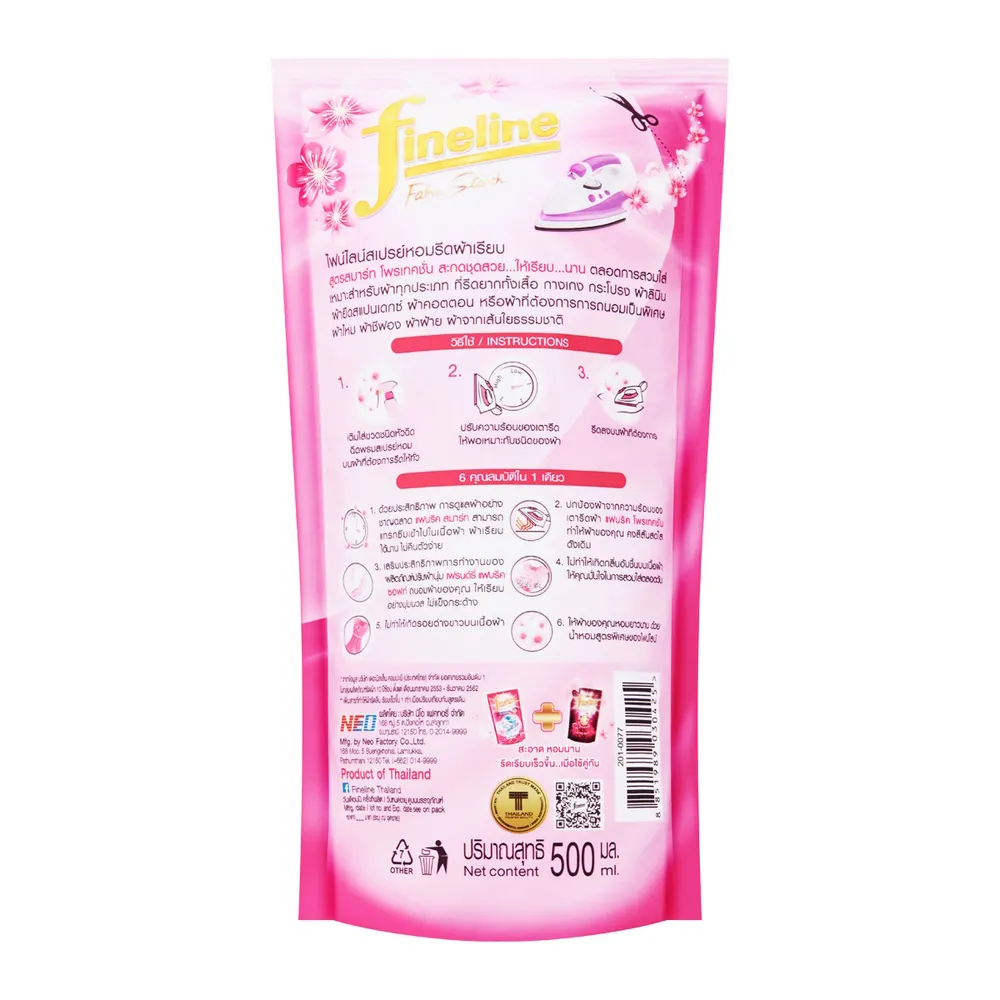 ไฟน์ไลน์ สเปรย์หอมรีดผ้าเรียบ กลิ่นพลีสเชอร์พิ้งค์ ถุงเติม 500 มล.