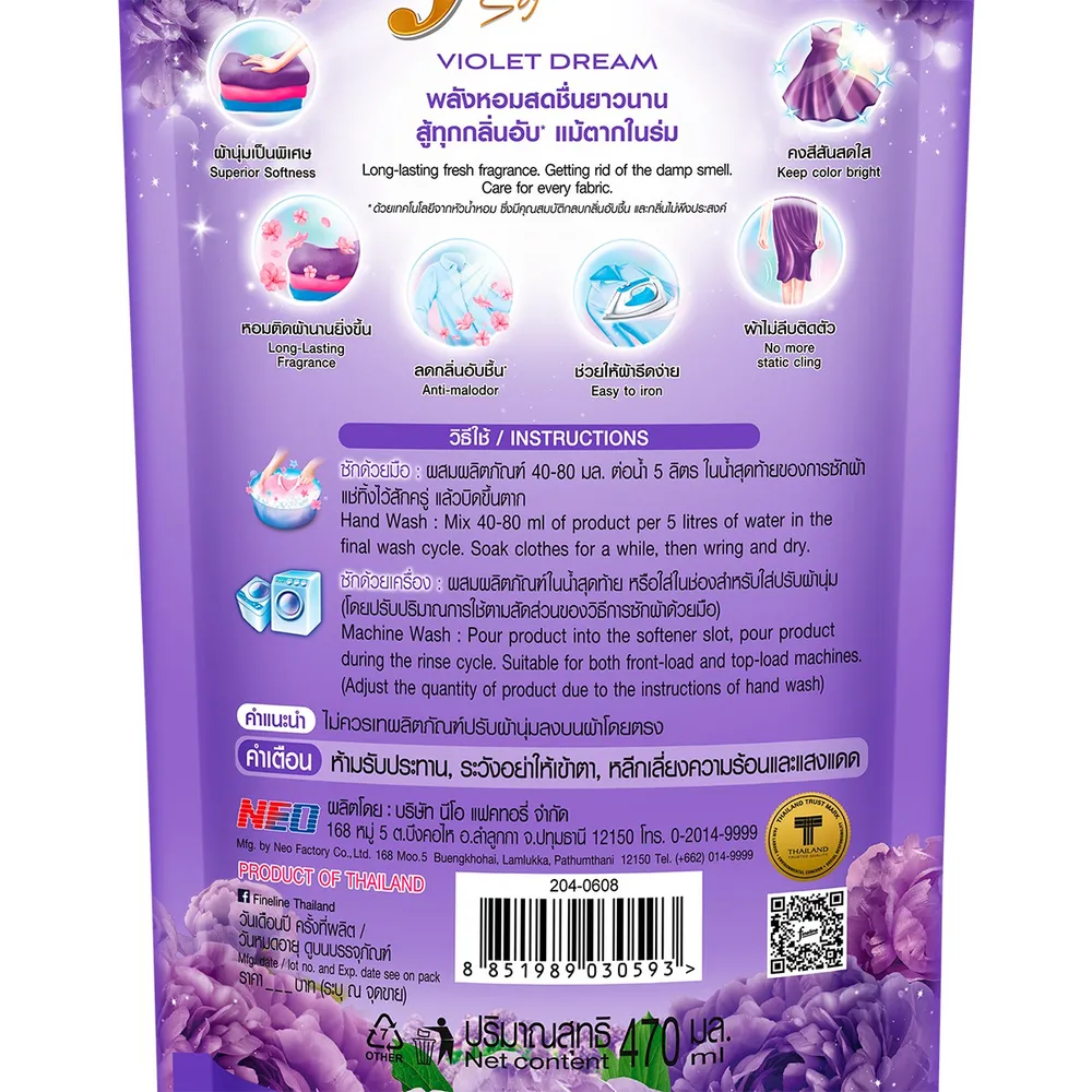 ไฟน์ไลน์ น้ำยาปรับผ้านุ่ม กลิ่นไวโอเล็ตดรีม ถุงเติม 470 มล.